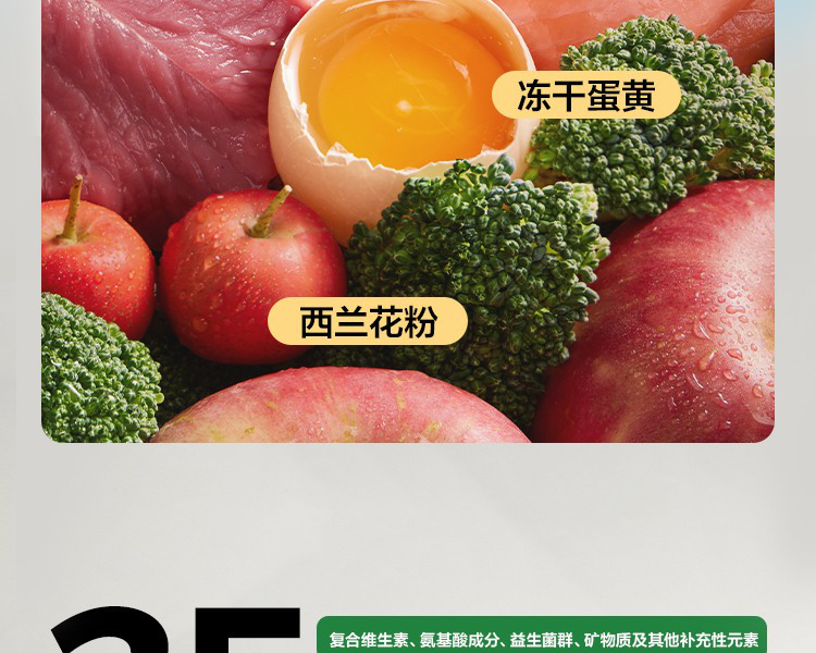 看的见的冻干和肉粒,添加百亿益生菌,富含25种营养元素