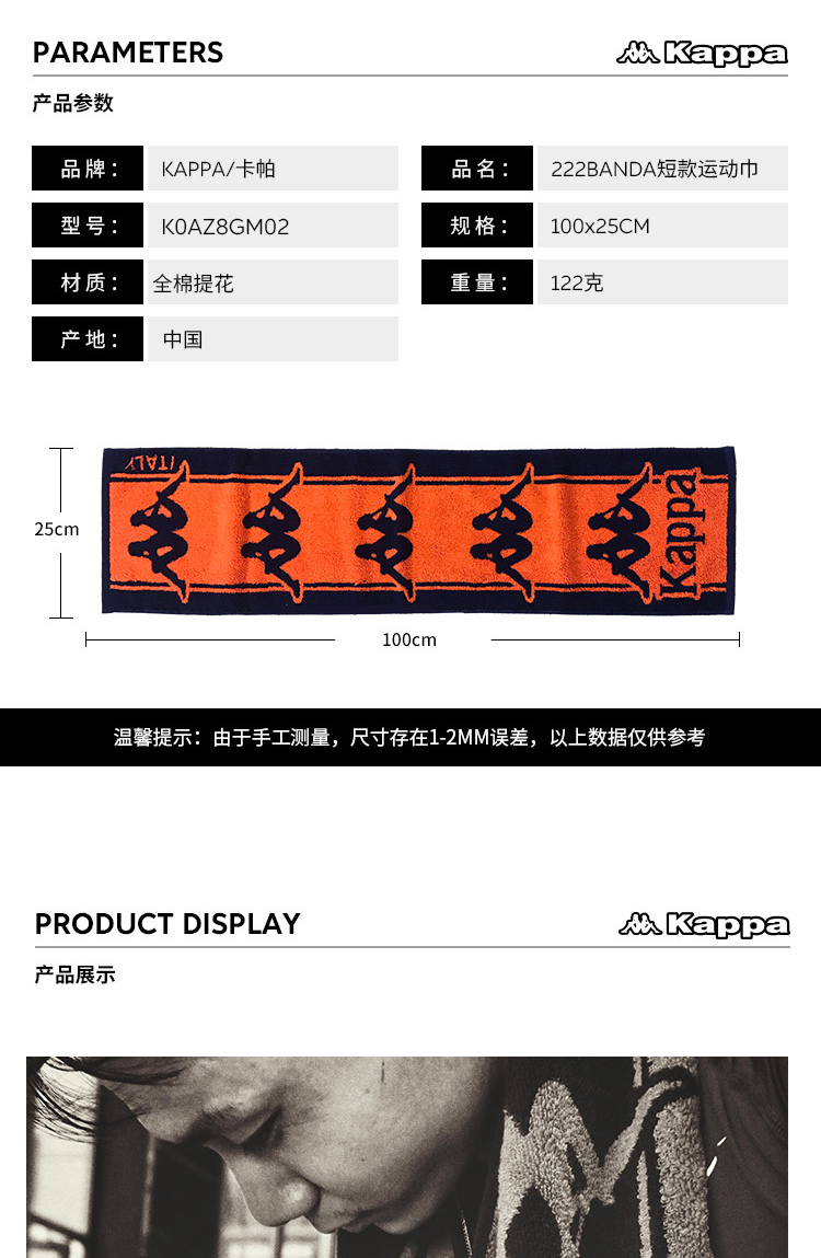 KAPPA 222BANDA短款运动巾毛巾 K0AZ8GM02
