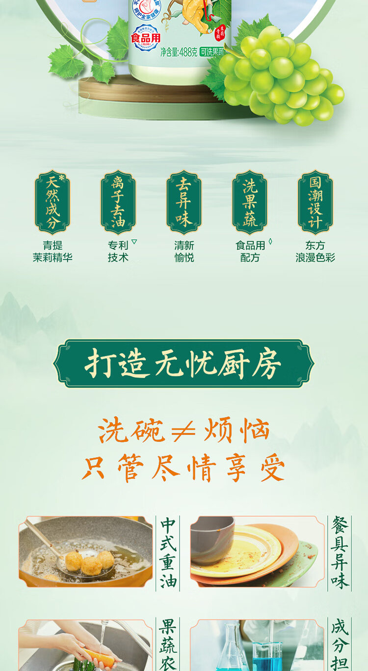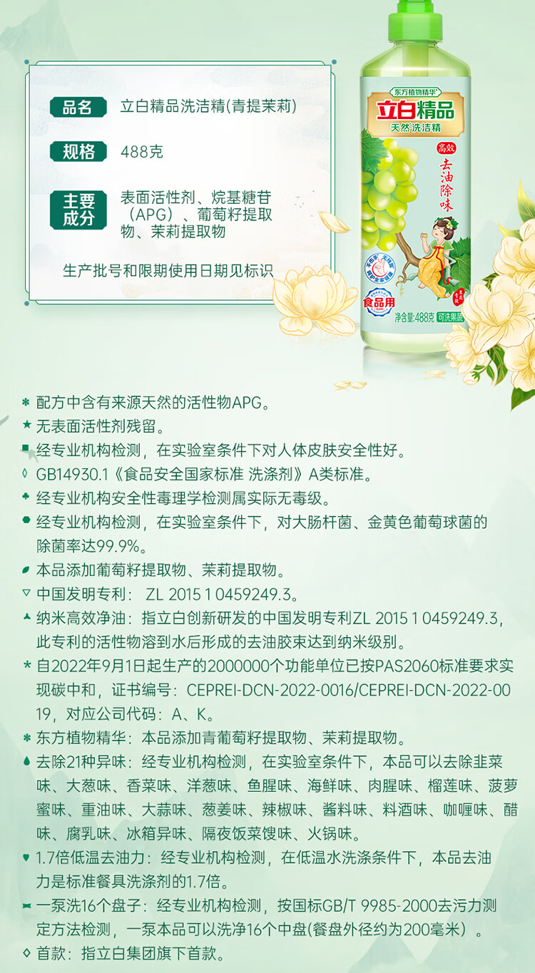 立白 精品青提茉莉洗洁精果蔬餐具净 488g