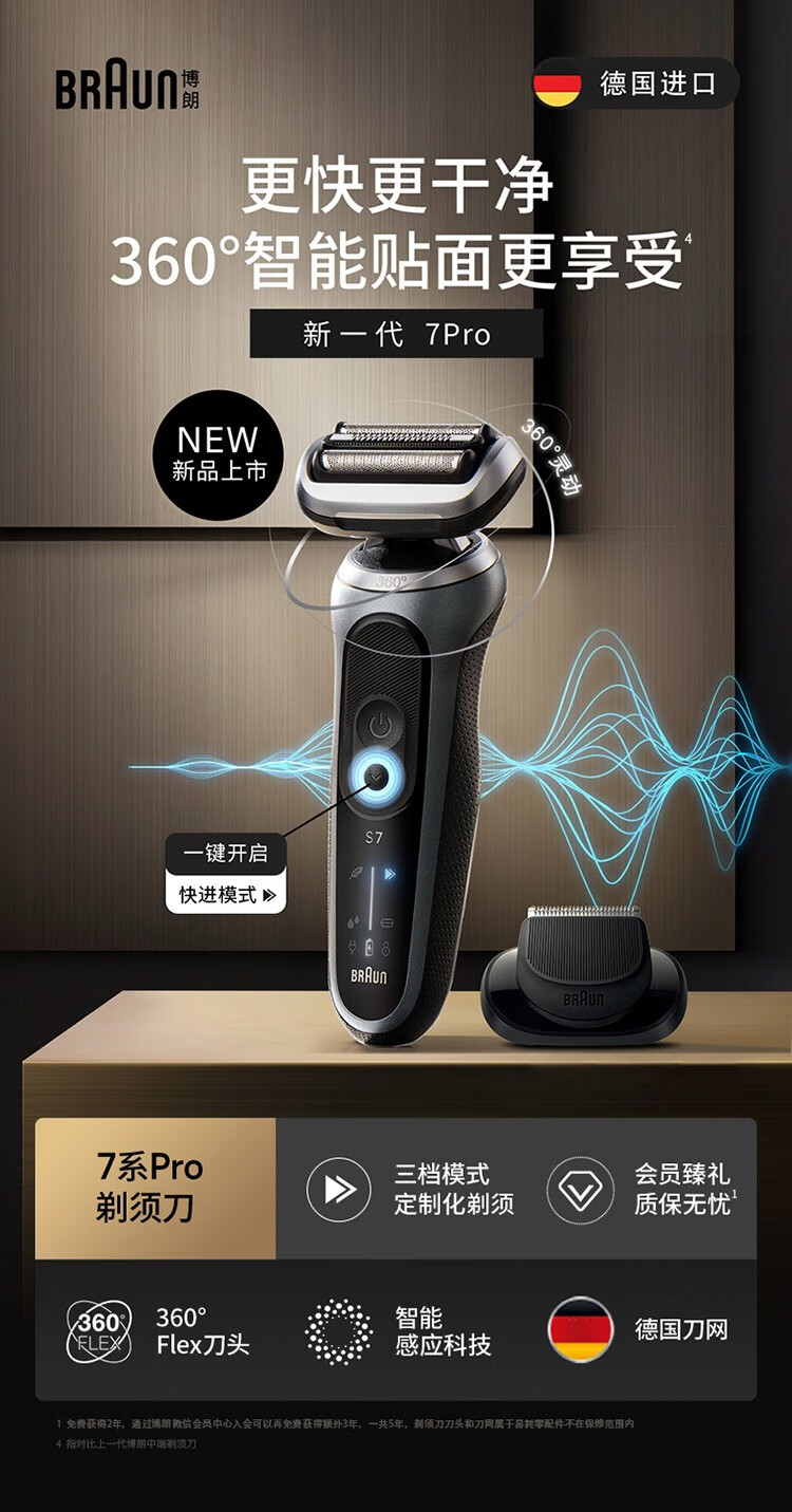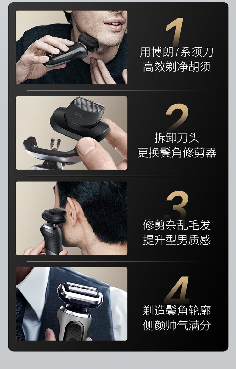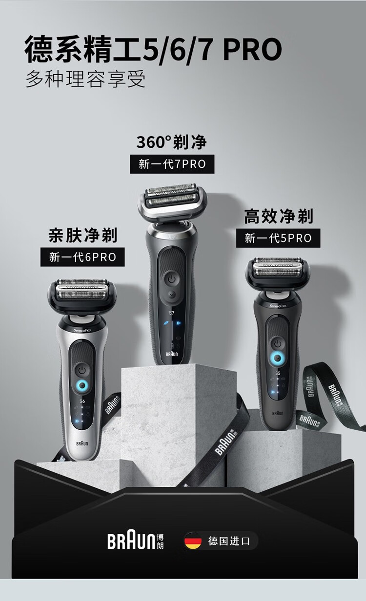 博朗(BRAUN)7系Pro往复式电动剃须刀深灰色 72-G1200s