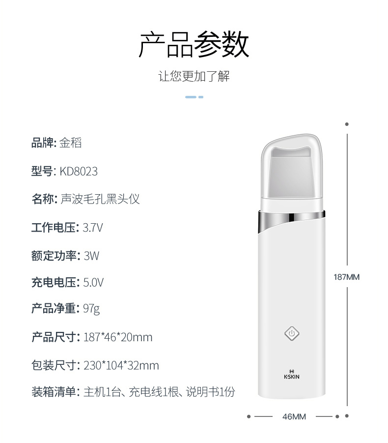 K-SKIN 金稻超声波毛孔清洁仪 KD8023 白色