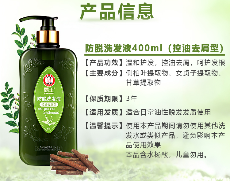 霸王 防脱发洗发水控油去屑型洗发液 (10101021455) 400ml