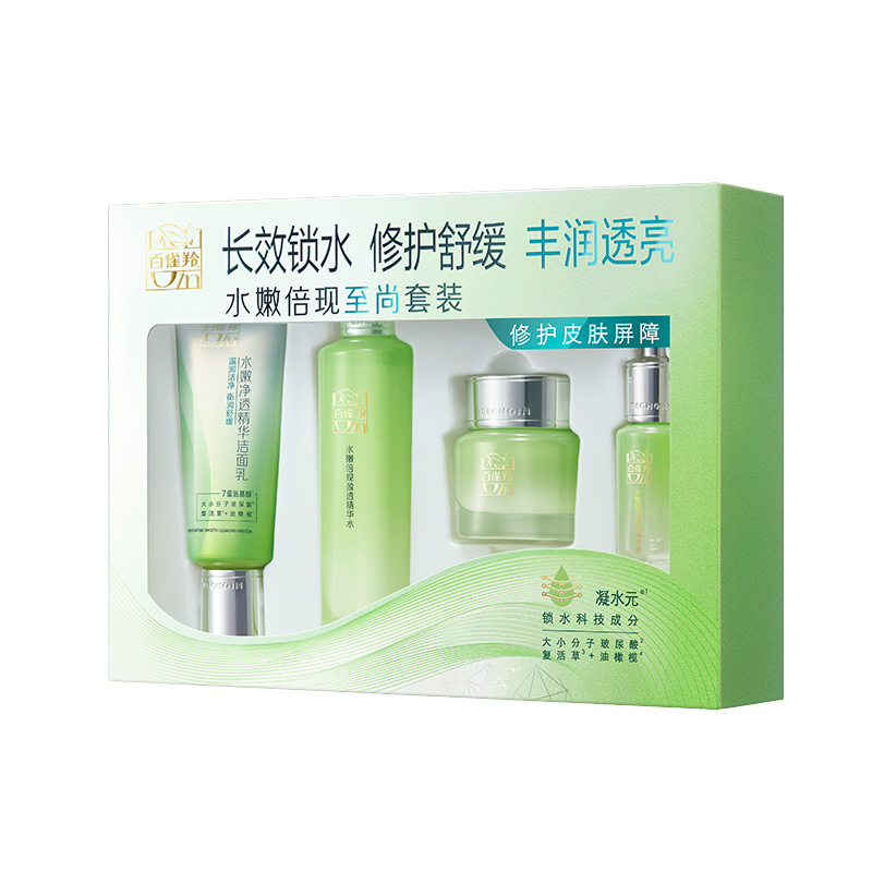 百雀羚 水嫩倍现至尚套装 洁面乳95g+精华水100ml+精华霜50g+眼部精华液15ml