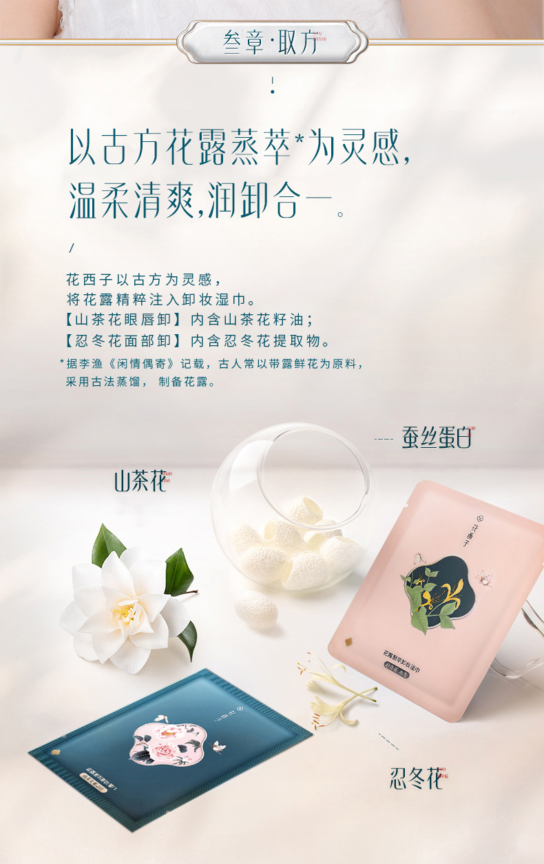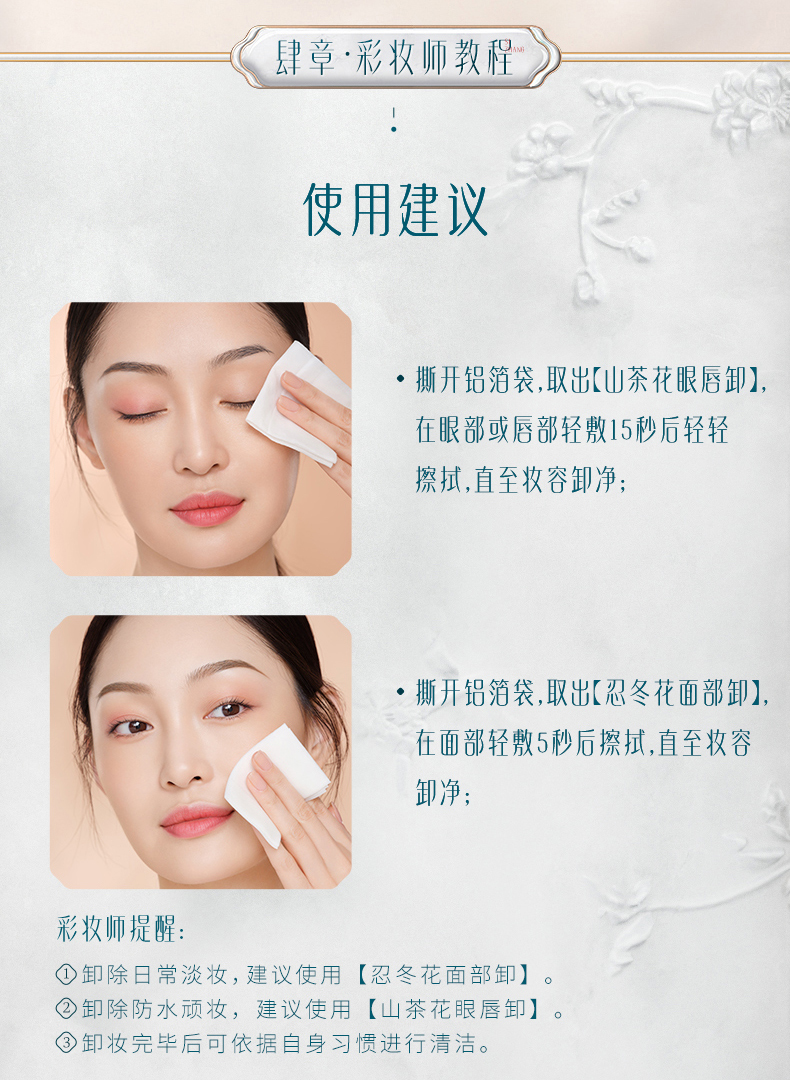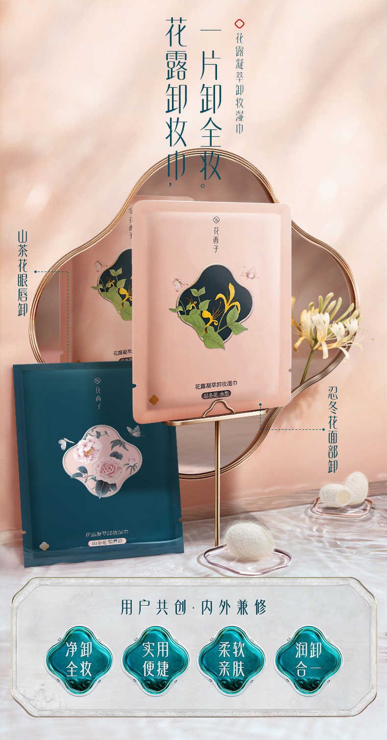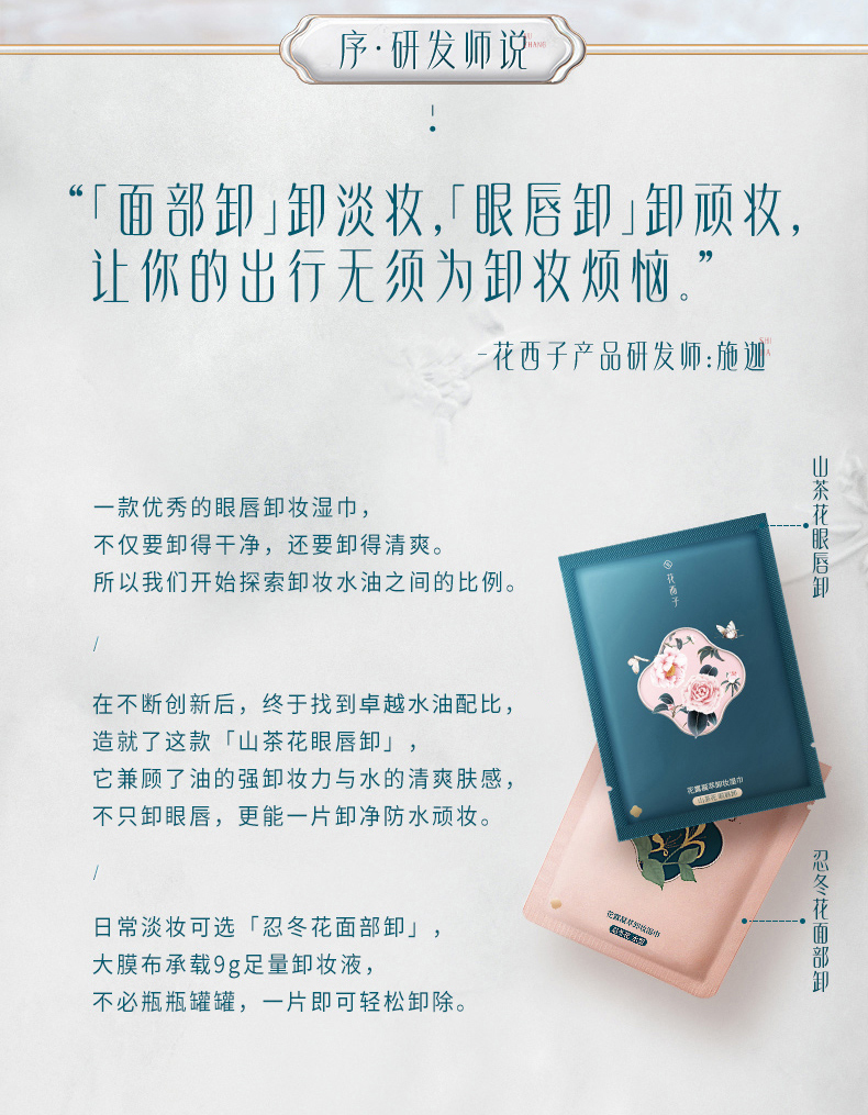 花西子花露凝萃卸妆湿巾 山茶花眼唇 20片装