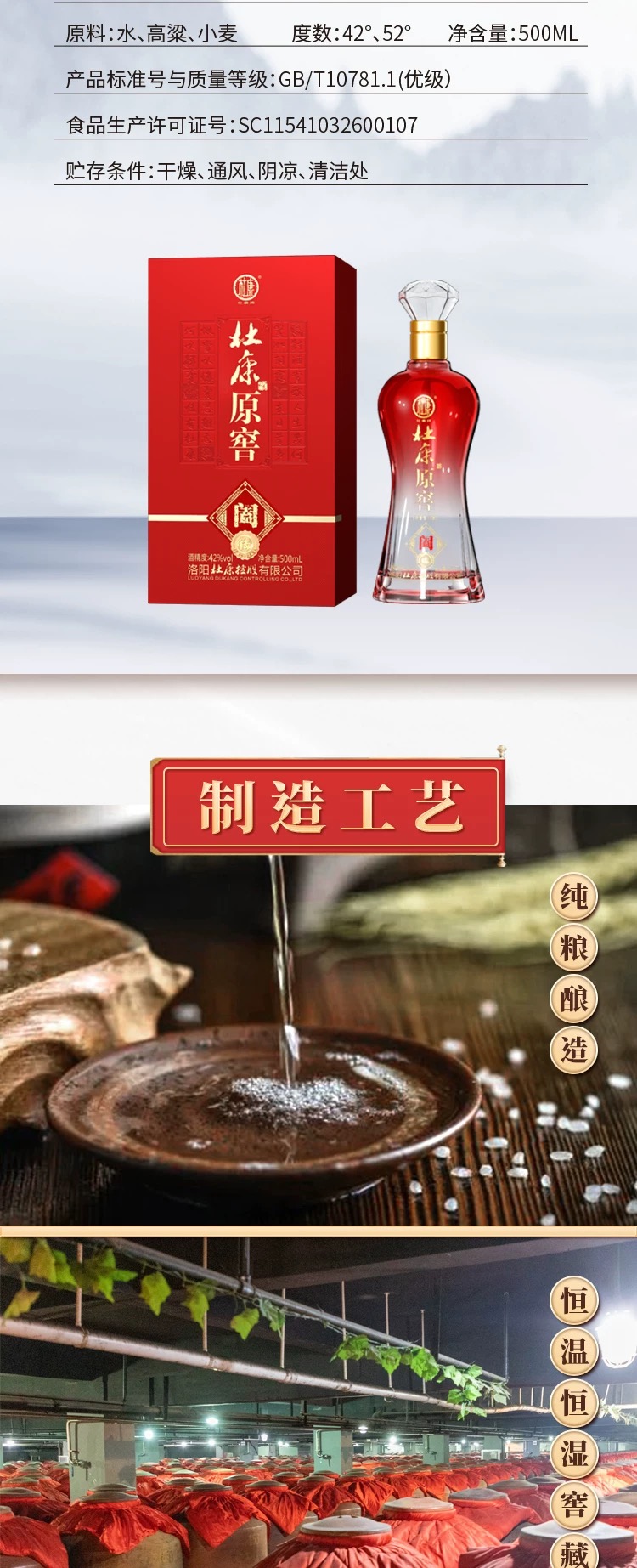 杜康原窖阖缘酒 浓香型白酒 纯粮固态发酵白酒 52%VOL 500ml*1瓶